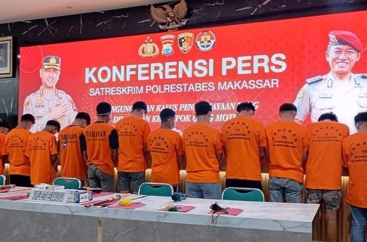 Makassar, toBagoes Sulbar – Aksi brutal kawanan geng motor kembali membuat resah warga Kota Makassar. Sebanyak 23 pelaku geng motor berhasil diringkus Satreskrim Polrestabes Makassar usai melakukan aksi pembacokan dan pembusuran terhadap lima warga di tiga lokasi berbeda pada Minggu (20/7/2025) dini hari.