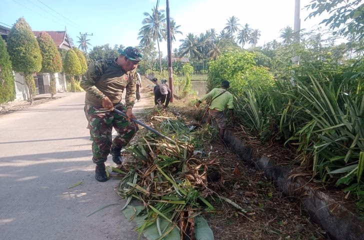 “Beberapa titik terlihat kumuh akibat rumput liar dan tumpukan sampah di saluran air. Kondisi ini bisa menimbulkan penyakit, makanya kami ajak warga untuk bergotong royong membersihkannya,” ujar Serka Hamzah.