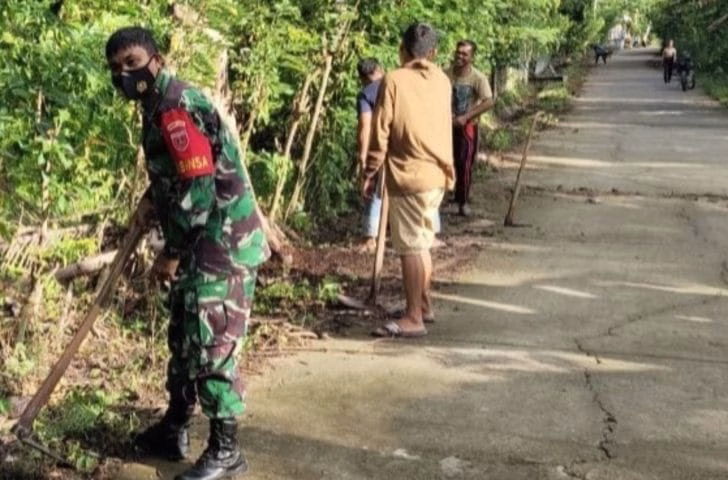 Kerja bakti tersebut dilakukan menyusuri pinggir jalan desa yang mulai ditumbuhi semak serta membersihkan saluran air dari endapan lumpur dan sampah yang berpotensi menyebabkan genangan saat hujan turun.