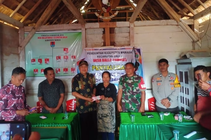 Mamasa. toBagoes Sulbar – Bhabinkamtibmas Desa Balla Tumuka, BRIGPOL Oskar Lubis, melaksanakan kegiatan pendampingan penyaluran Bantuan Langsung Tunai Dana Desa (BLT-DD) tahap VI-VII tahun anggaran 2025 yang berlangsung pada Jumat, pukul 13.00 WITA di Desa Balla Tumuka, Kecamatan Balla, Kabupaten Mamasa, 11 Juli 2025
