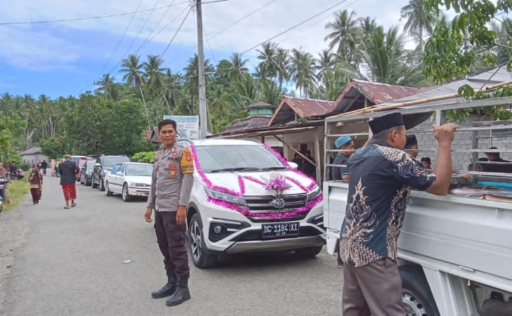 Bhabinkamtibmas Polsek Bambalamotu Amankan dan Atur Lalin Iringan Pengantin di Desa Kalola