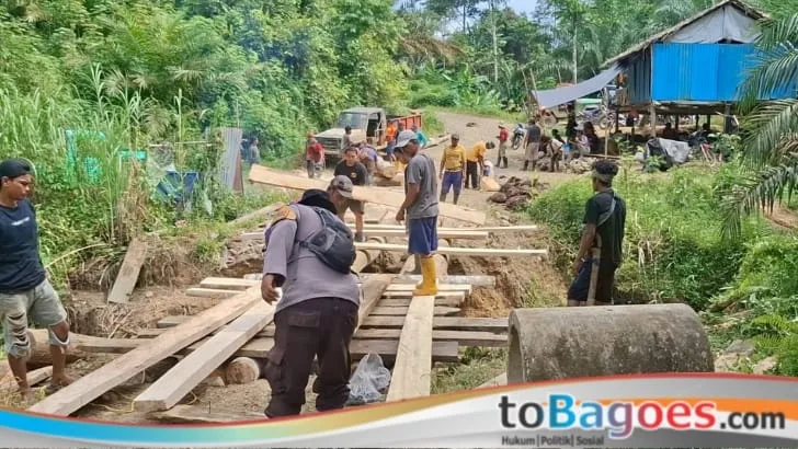 Di bawah terik matahari, tampak sinergi nyata antara Polri dan masyarakat. Dengan tangan berlumur lumpur dan wajah penuh semangat, AIPDA Gerson Tolan bersama warga bahu-membahu menata batu, memperbaiki gorong-gorong, serta mengganti papan jembatan yang rusak demi memperlancar mobilitas dan perekonomian warga.