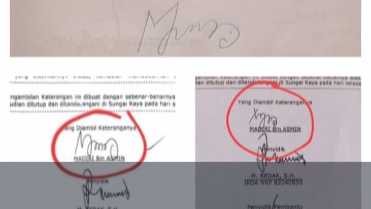 1. Rekaman video Madiri membuat tanda tangan asli sebanyak enam kali dengan bentuk yang konsisten.