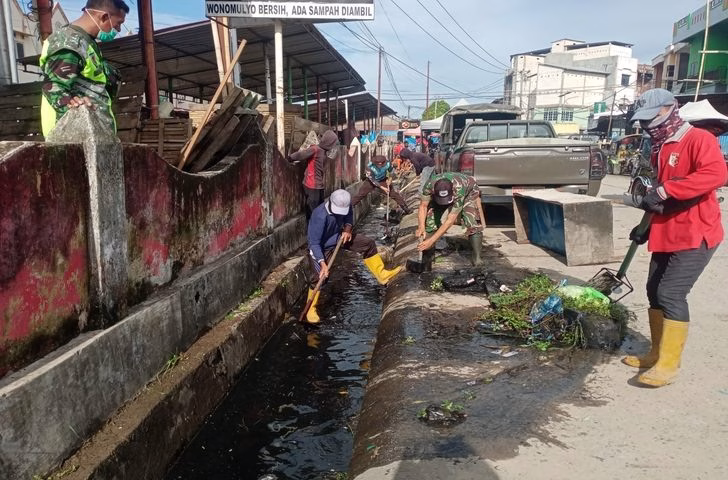 TNI dan Warga Bersihkan Drainase di Wonomulyo, Antisipasi Genangan dan Penyakit
