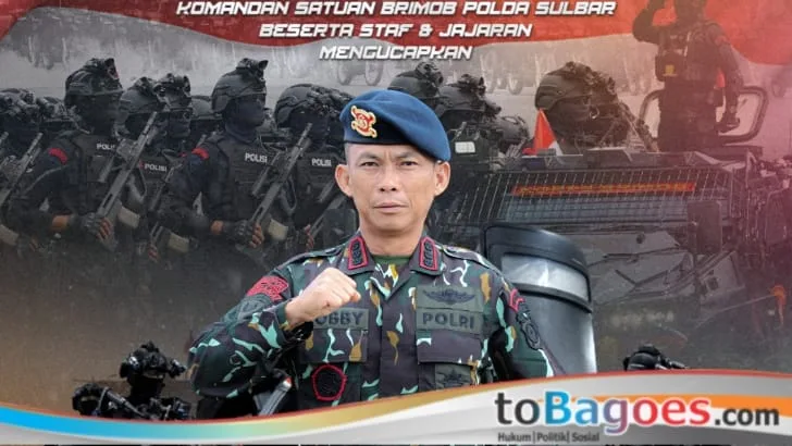 Mamuju, toBagoes Sulbar – Komandan Satuan (Dansat) Brimob Polda Sulawesi Barat, Kombes Pol Robby Samban, S.I.K., menyampaikan ucapan selamat dalam rangka peringatan Hari Ulang Tahun ke-80 Korps Brimob Polri, yang mengusung tema besar “Brimob Presisi untuk Masyarakat.”