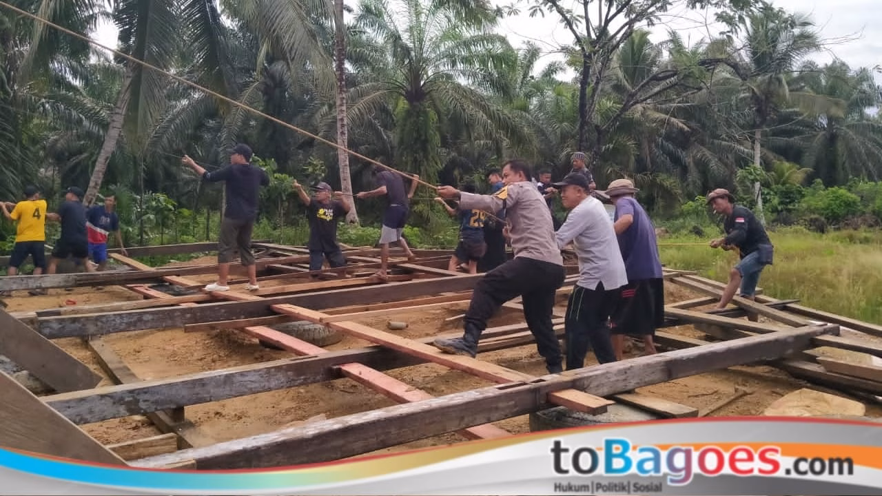 Kegiatan tersebut melibatkan Bhabinkamtibmas Sarudu Polres Pasangkayu, Bripka Nurdin Kanda, yang turun langsung membantu warga mendirikan tiang bangunan asrama. Sejak pagi hari, ia tampak bahu-membahu bersama masyarakat, memanggul kayu dan menegakkan tiang dengan penuh keikhlasan.