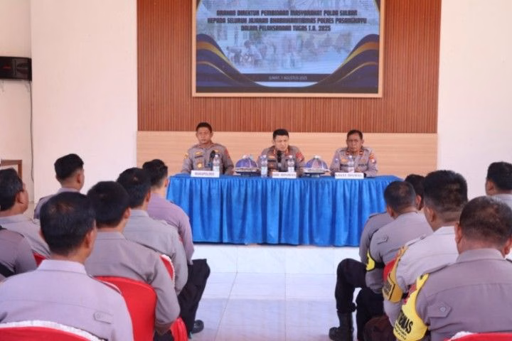 Pasangkayu, toBagoes Sulbar – Direktur Binmas Polda Sulawesi Barat, Kombes Pol Agung Triwidiantoro, memberikan pengarahan strategis kepada seluruh Bhabinkamtibmas jajaran Polres Pasangkayu di Aula Wicaksana Laghawa, Jumat (1/8/2025).