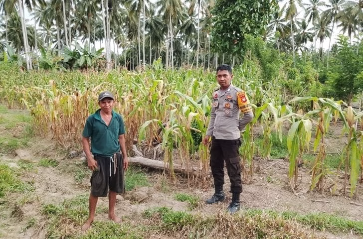 POLRES PASANGKAYU – Bhabinkamtibmas Polsek Bambalamotu Polres Pasangkayu Bripka Wira Darmawan menyambangi Kamaruddin Salah satu petani jagung yang ada di Lingk. Baliri Kelurahan Bambalamotu Kecamatan Bambalamotu Kabupaten Pasangkayu Selasa 27 Mei 2025