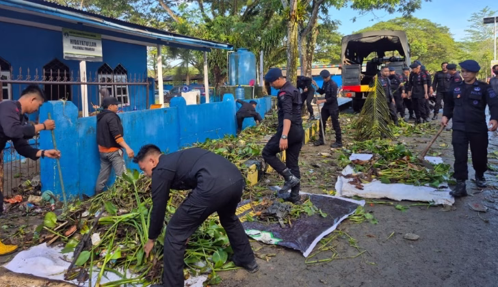 Setibanya di lokasi sekitar pukul 07.45 WITA, personel langsung turun ke lapangan untuk melakukan pembersihan material yang mengganggu akses masyarakat. Kegiatan ini turut melibatkan Dinas Lingkungan Hidup dan Kehutanan (DLHK) serta pengurus dan santri Pondok Pesantren Hidayatullah.