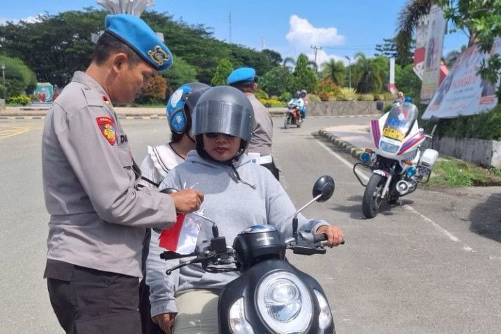 Kegiatan yang penuh makna ini dipimpin langsung oleh Kasi Propam IPTU H. Darwis, didampingi Kanit Paminal IPDA Aris Anwar serta personel Si Propam lainnya. Suasana terlihat semarak, para penguna jalan menyambut dengan antusias pembagian bendera yang menjadi simbol kecintaan terhadap bangsa.