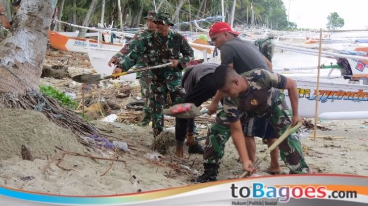 Majene, toBagoes Sulbar – Menjelang pembukaan TNI Manunggal Membangun Desa (TMMD) ke-126 Tahun 2025, personel Kodim 1401/Majene bersama masyarakat Desa Balombong, Kecamatan Pamboang, bahu-membahu melaksanakan gotong royong di pesisir pantai, Selasa (7/10/2025).