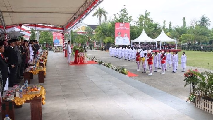 Enam kompi gabungan yang terdiri dari TNI, Polri, Satpol PP, Damkar, ASN, mahasiswa, serta pelajar SMA dan SMP ikut membentuk barisan. Prosesi penyerahan bendera dari Rumah Jabatan Bupati hingga pengibaran oleh Paskibraka berlangsung menggetarkan, disaksikan masyarakat yang memenuhi lapangan.