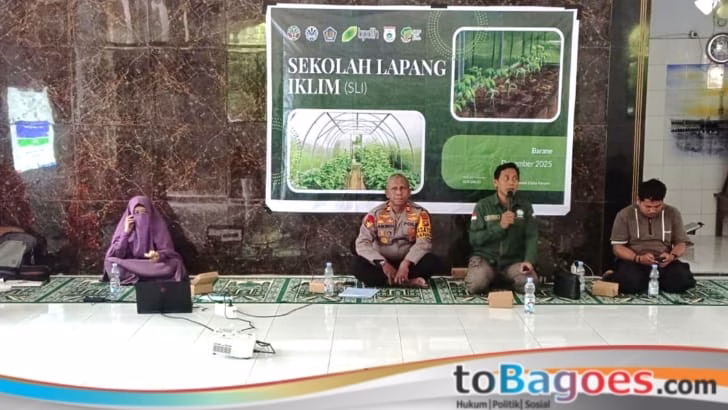 Majene, toBagoes Sulbar – Kasat Polairud Polres Majene, IPTU Armin, menjadi salah satu narasumber dalam kegiatan Sekolah Lapang Iklim (SLI) Tahun 2025 yang digelar oleh Dinas Lingkungan Hidup Provinsi Sulawesi Barat. Kegiatan berlangsung di Masjid Nur Sahadah, Lingkungan Barane, Kelurahan Baurung, Kecamatan Banggae Timur, Kabupaten Majene, Selasa (23/12/2025).