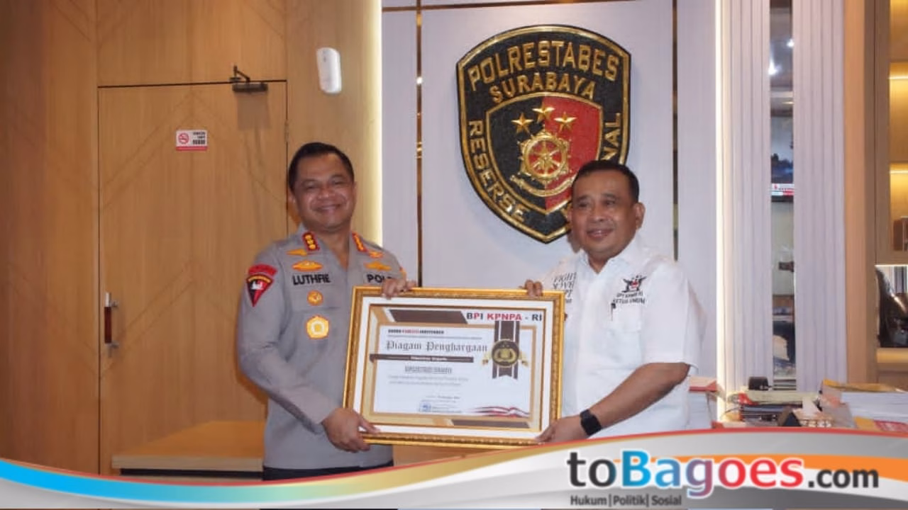 Penghargaan tersebut diserahkan langsung oleh Ketua Umum BPI KPNPA RI TB Rahmad Sukendar kepada Kapolrestabes Surabaya Kombes Pol Lutfie Sulistyawan pada Selasa, 6 Januari 2026, bertempat di ruang kerja Kasat Reskrim Polrestabes Surabaya.