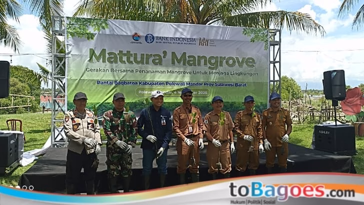 Polewali Mandar, toBagoes Sulbar – Dalam rangka menjaga kelestarian lingkungan dan memperkuat sinergitas antara aparat keamanan, pemerintah, serta lembaga keuangan, Kapolsek Campalagian IPTU H. Harifuddin, S.Sos., mewakili Kapolres Polewali Mandar, menghadiri kegiatan “Mattura’ Mangrove” yang diselenggarakan oleh Bank Indonesia Perwakilan Sulawesi Barat, bertempat di Pantai Babbatoa, Desa Lapeo, Kecamatan Campalagian, Kabupaten Polewali Mandar, pada Selasa (04/11/2025) pukul 10.00 WITA.