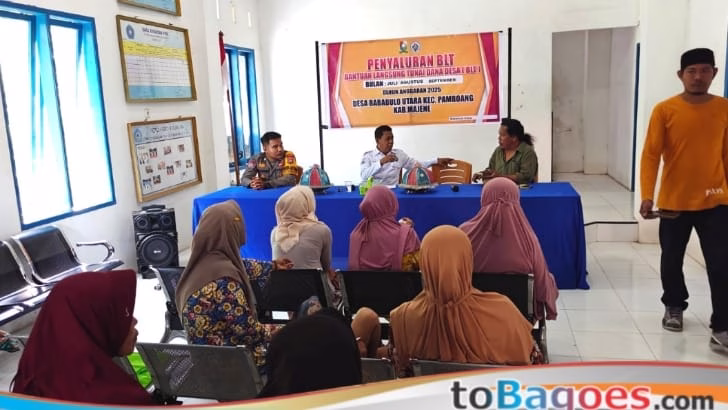 Majene, toBagoes Sulbar – Dalam memastikan distribusi Bantuan Langsung Tunai (BLT) Dana Desa tepat sasaran serta berjalan sesuai ketentuan, Bhabinkamtibmas Polsek Pamboang Briptu Tajuddin melaksanakan pemantauan dan pendampingan langsung pada kegiatan penyaluran BLT Dana Desa tahap IV di Kantor Desa Bababulo Utara, Kecamatan Pamboang, Kabupaten Majene, Rabu (3/12/25).