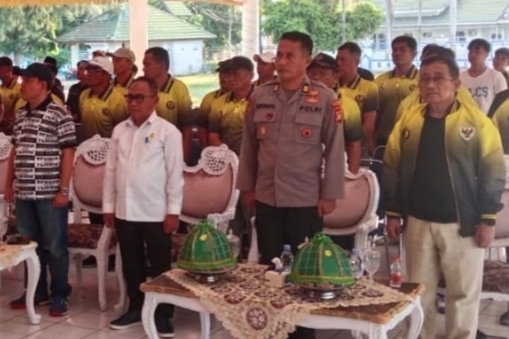 Majene, toBagoes Sulbar – Kabag Sumber Daya Manusia (SDM) Polres Majene, AKP Suryanto, menghadiri pelantikan pengurus Persatuan Tenis Lapangan Indonesia (PELTI) Kabupaten Majene periode 2025–2029 yang digelar di Pendopo Rumah Jabatan Bupati Majene, Senin (28/07/25).