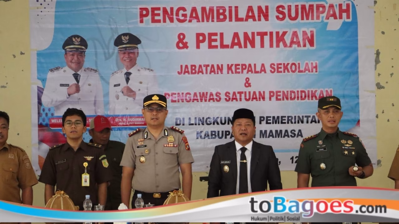 Mamasa, toBagoes Sulbar – Kapolres Mamasa AKBP Ariantony Utama Bangalino, S.H., S.I.K., menghadiri kegiatan pengambilan sumpah dan pelantikan jabatan kepala sekolah serta pengawas satuan pendidikan di lingkungan Kabupaten Mamasa. Kegiatan tersebut berlangsung di Kantor Dinas Pendidikan Kabupaten Mamasa, Senin (12/1/2026).