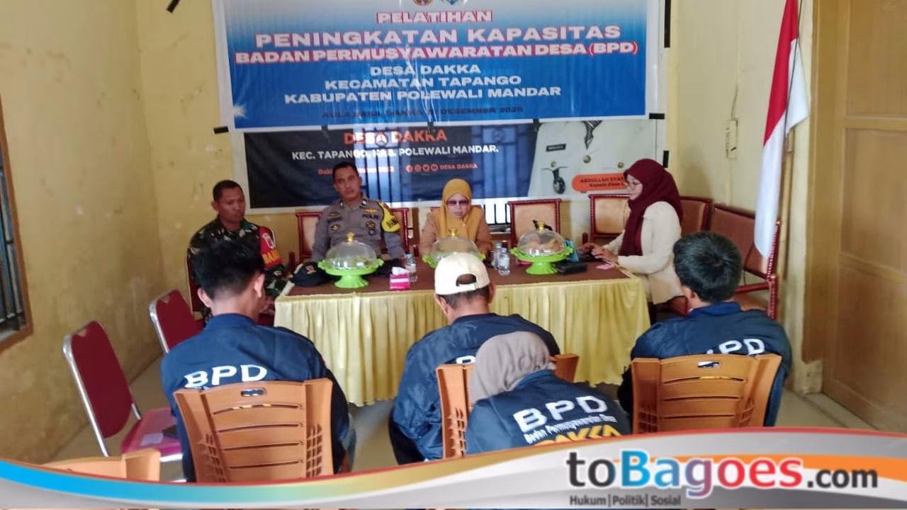 Polewali Mandar, toBagoes Sulbar – Bhabinkamtibmas Desa Dakka Polsek Tapango Polres Polewali Mandar, Aiptu Sutekno, menghadiri sekaligus menjadi pemateri dalam kegiatan Pelatihan Peningkatan Kapasitas Badan Permusyawaratan Desa (BPD) Desa Dakka, Selasa (6/1/2026).