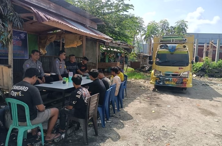 Dalam suasana akrab, AKP Junaid menyampaikan pesan-pesan keselamatan berlalu lintas sembari mendengarkan langsung masukan, keluhan, serta tantangan yang dihadapi para sopir di lapangan.