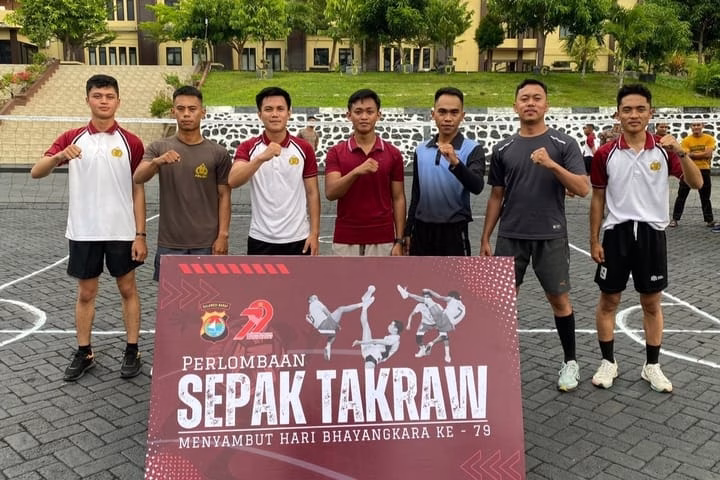 Mamuju, toBagoes Sulbar – Semarak Hari Bhayangkara ke-79 di Polda Sulawesi Barat (Sulbar) diwarnai dengan persaingan ketat turnamen takraw internal. Event yang berlangsung di lapangan Tribrata Mapolda Sulbar ini juga menjadi ajang silaturahmi dan unjuk kemampuan antar satuan kerja (Satker) di lingkungan Polda Sulbar.