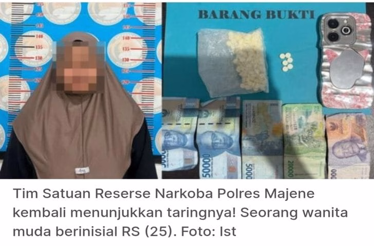 MAJENETim Satuan Reserse Narkoba Polres Majene kembali Menangkap Seorang wanita muda berinisial RS (25), warga Kelurahan Baru, Kecamatan Banggae, berhasil diamankan setelah diduga menjadi pelaku peredaran obat-obatan terlarang jenis Trihexyphenidyl—yang lebih dikenal di kalangan remaja sebagai “bojek”.