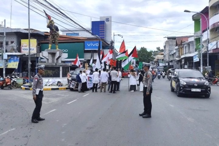 Aksi berjalan tertib tanpa insiden. Peserta membentangkan poster dan spanduk berisi pesan kemanusiaan serta menyerukan dukungan untuk rakyat Palestina.