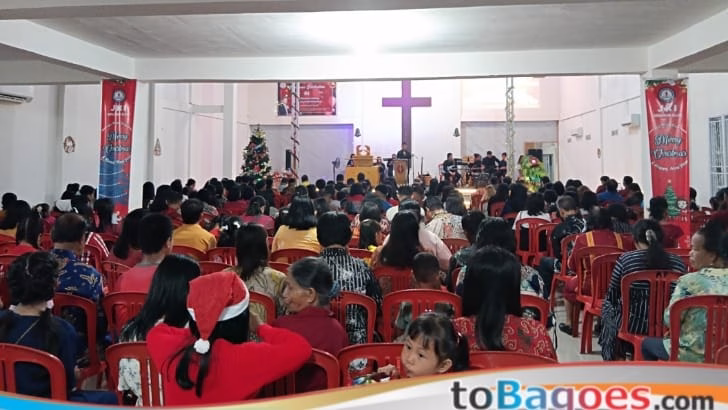 Ibadah yang dimulai pukul 18.30 WITA tersebut mengusung tema “Natal Memberikan Hidup dalam Segala Kelimpahan”. Sekitar 500 jemaat tampak khidmat mengikuti rangkaian ibadah yang dipimpin oleh Pdt. Dr. Sih Harjo Boko Bethel, Sp.A., M.Th.