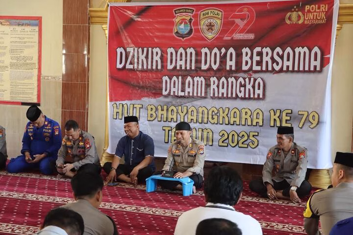 “Dzikir dan doa bersama ini kami laksanakan sebagai bagian dari pembinaan rohani serta bentuk syukur menjelang peringatan Hari Bhayangkara ke-79.
