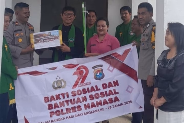 Mamasa, toBagoes Sulbar – Dalam rangka menyambut Hari Bhayangkara ke-79 tahun 2025, Polsek Aralle melaksanakan kegiatan Bakti Sosial (Baksos) Religi yang berlangsung di Gereja Toraja Mamasa (GTM) Jemaat Ebenhaeser, Buntu Malangka, Desa Bumal, Kecamatan Bumal, Kabupaten Mamasa, pada Minggu pukul 10.30 WITA, 22 Juni 2025
