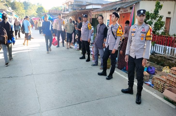 MAMASA—Personel Polsek Aralle melaksanakan kegiatan pengamanan jalur (Pam Jalur) dan penertiban parkir kendaraan di jalan poros depan Pasar Tradisional Aralle, Kecamatan Aralle, Kabupaten Mamasa, pada Jumat pagi, 23 Mei 2025