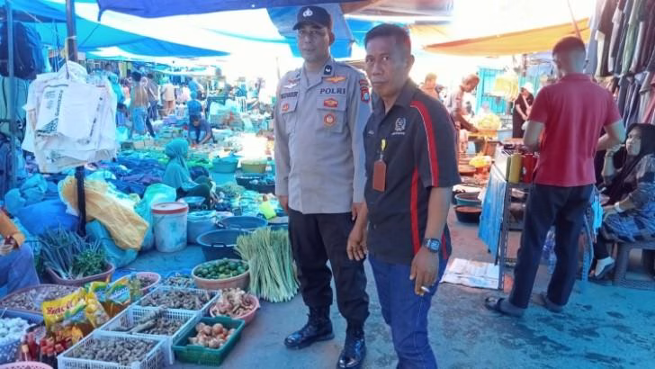 Kanit Samapta Polsek Polewali, Aipda Muzakkir, bersama Bhabinkamtibmas Kelurahan Pekkabata dan Kepala Pasar Sentral Pekkabata, Marzuki, turun langsung memantau situasi keamanan.