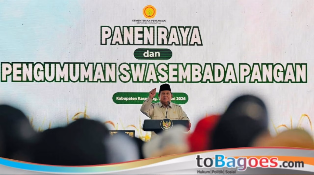 Karawang, toBagoes Sulbar – Presiden Republik Indonesia Prabowo Subianto secara resmi mengumumkan keberhasilan Indonesia mencapai swasembada pangan nasional tahun 2025. Pengumuman tersebut disampaikan Presiden saat menghadiri Panen Raya di Desa Kertamukti, Kabupaten Karawang, Jawa Barat, Rabu (7/1/2026).