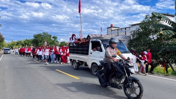 Berkat pengawalan yang ramah dan penuh keakraban, kegiatan jalan santai berlangsung aman, lancar, dan meriah. Riuh tawa, semangat gotong royong, serta cinta tanah air terpancar jelas dari wajah para peserta, mencerminkan bahwa nilai kebersamaan dan nasionalisme terus hidup di tengah masyarakat Pasangkayu.