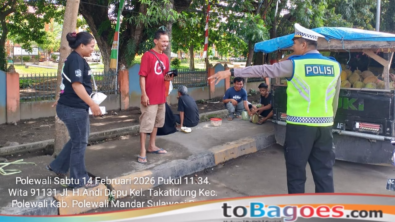 Polewali Mandar – Dalam rangka pelaksanaan Operasi Keselamatan Marano 2026, Satgas Preventif Sub Satgas Lantas Polres Polewali Mandar melaksanakan kegiatan preventif berupa edukasi dan pengaturan arus lalu lintas, di Jalan H. Andi Depu, Kelurahan Takatidung, Kecamatan Polewali, Kabupaten Polewali Mandar. Sabtu (14/2/2026).