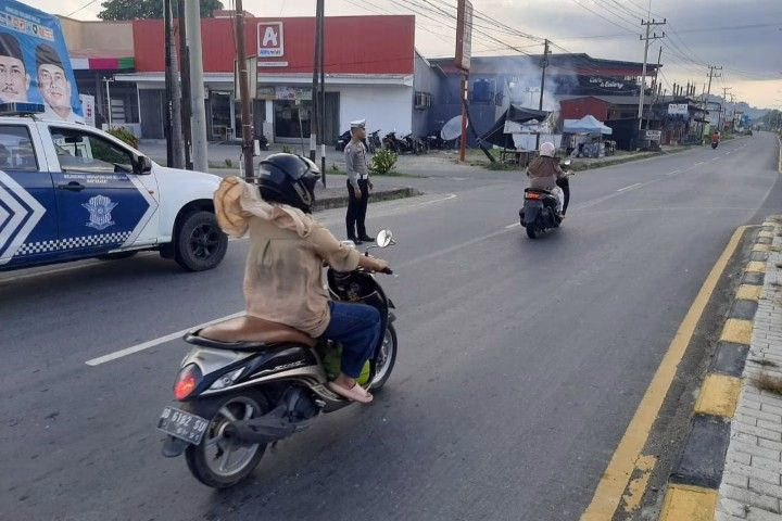 Selain pengaturan lalu lintas, petugas juga memberikan edukasi langsung kepada pengendara mengenai pentingnya memakai helm, sabuk pengaman, serta larangan menggunakan ponsel saat berkendara.
