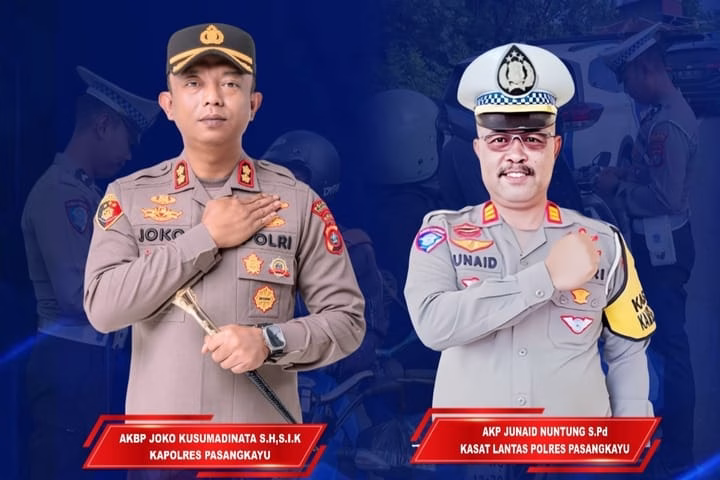 Kapolres Pasangkayu AKBP Joko Kusumadinata, S.H., S.I.K. bersama Kasat Lantas AKP Junaid Nuntung, S.Pd. mengimbau seluruh masyarakat Pasangkayu agar senantiasa tertib dan patuh terhadap aturan berlalu lintas demi menciptakan situasi yang aman, nyaman, dan tertib di jalan raya.