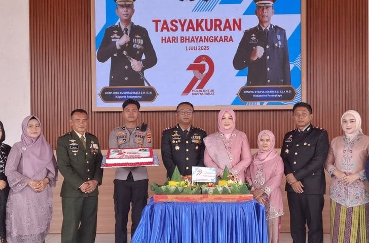 Kapolres Pasangkayu juga menyampaikan sambutan penuh semangat, menekankan pentingnya sinergitas antara Polri dan seluruh komponen masyarakat demi menciptakan rasa aman, nyaman, dan harmonis. Puncak acara ditandai dengan pemotongan tumpeng yang secara simbolis diberikan kepada personel Polri tertua dan termuda sebagai bentuk penghargaan atas pengabdian lintas generasi di tubuh institusi Bhayangkara.