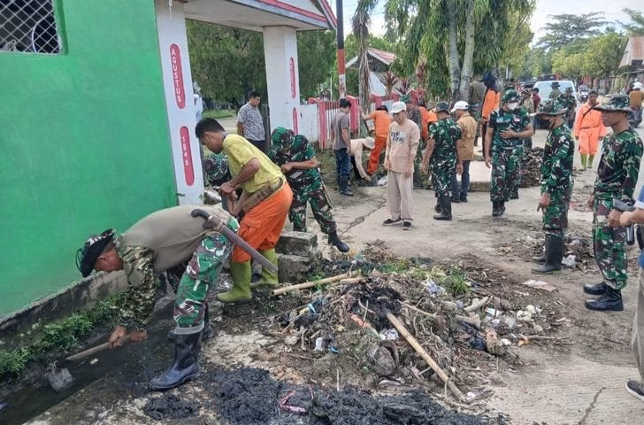 Polewali Mandar, toBagoes Sulbar – Sejumlah personel TNI dari Koramil 1402-01/Polewali bersama petugas Dinas Lingkungan Hidup dan Kebersihan (DLHK) serta warga setempat, bergotong royong membersihkan saluran air yang tersumbat tumpukan sampah di Kelurahan Pekkabata, Kecamatan Polewali, Kamis (26/6/2025).