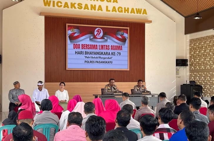 Pasangkayu, toBagoes Sulbar – Kepolisian Resor Pasangkayu menggelar kegiatan Doa Lintas Agama dalam rangka menyambut Hari Bhayangkara ke-79 di Baruga Wicaksana Laghawa Mapolres Pasangkayu, Kamis (26/6/25).